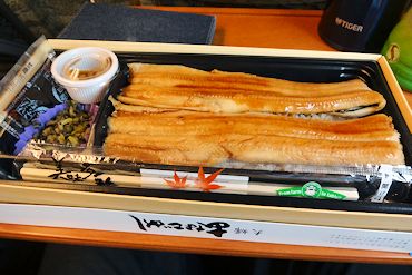 | 京阪神方面に向かう時は、新幹線「さくら」の車中で・・・毎回、飽きもせず「あなごめし」の昼食! |