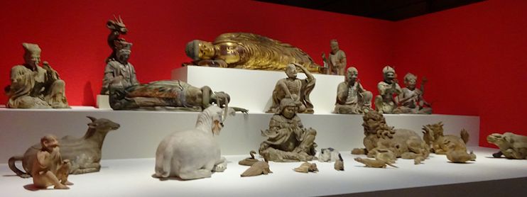 | 特別展『法然と極楽浄土』・・・香川・法然寺の仏涅槃群像(ぶつねはんぐんぞう)だけは写真撮影OKでした |