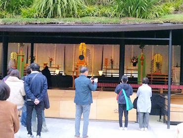 仮殿・・・斬新ですね〜! 屋根の上の草・・・私には??? |