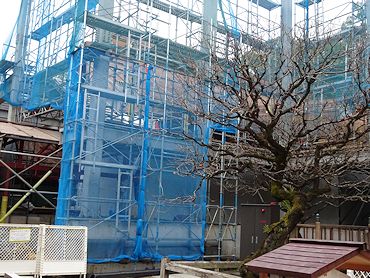 | 本殿は改修中! 124年ぶりの改修だそうですが・・・ |