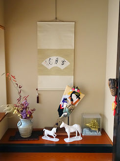 中央には、埴輪の馬を・・・・50年前に我々夫婦が結婚したとき、ms.TANUKI の教え子がプレゼントしてくれたものだそうです。宮崎の高校に勤めていましたので・・・・当時の宮崎の土産物と言えば、やっぱり埴輪ですね。 |
