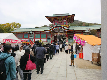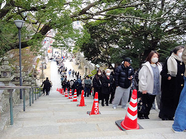 | 防府天満宮へ・・・参拝の列は階段の下まで続いていました |